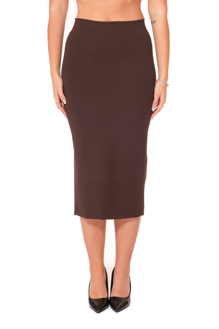 Gonna Modellante midi con spacco laterale , Tessuto Punto Milano